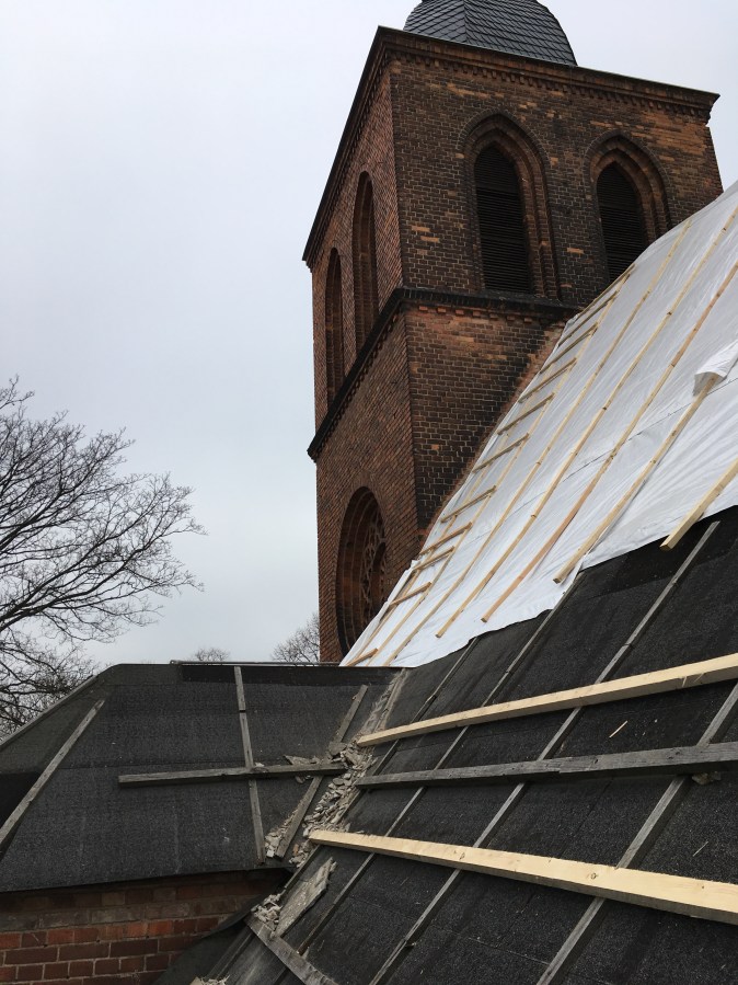 Das alte Dach ist abgedeckt.